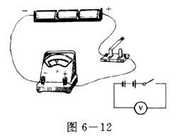 (1)将电压表的正接线柱通过开关与干电池的正极相连,负接线柱与干电池的负极相连,合上开关,这时电压表的示数表示干电池的电压(图6-11)